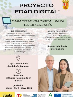 La formación se impartirá en el Punto Vuela Guadalinfo de Benaocaz, con una duración total de 20 horas (máximo 5 horas diarias), durante los meses de marzo, abril y mayo de 2026.